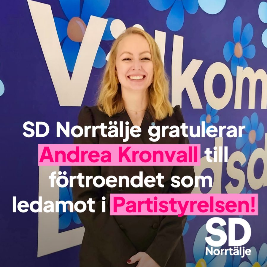 Vi gratulerar vårt kommunalråd tillika gruppledare Andrea Kronvall till det stora förtroendet att bli invald som ledamot i Sverigedemokraternas partistyrelse 🇸🇪 💪
