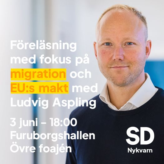 SD Nykvarn har den stora glädjen att bjuda dig på en spännande föreläsning med riksdagsledamot Ludvig Aspling, med fokus på migration och EU:s makt.