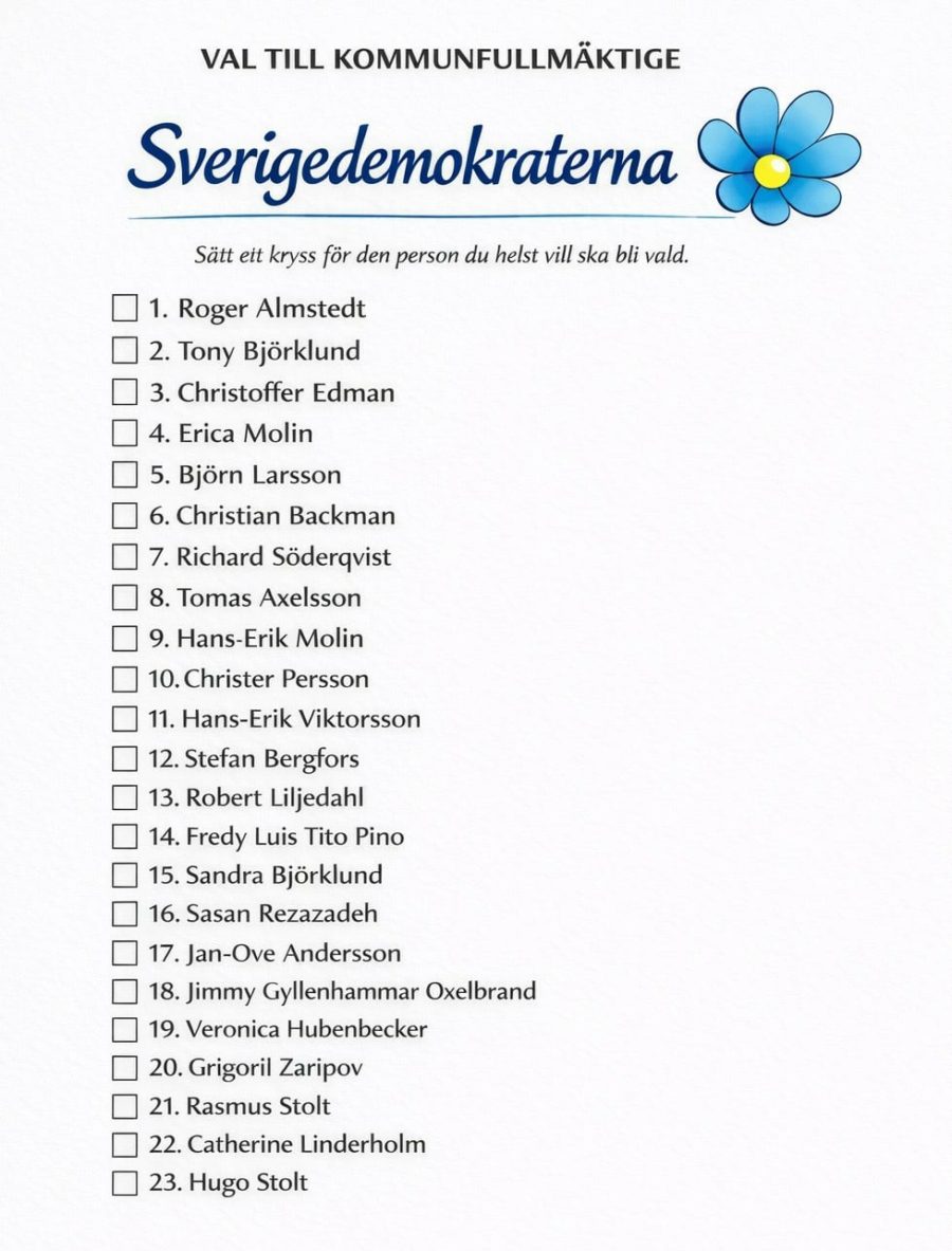 (red. Valsedeln är framtagen genom AI och motsvarar inte den korrekta utformning som kommer finnas till valet)