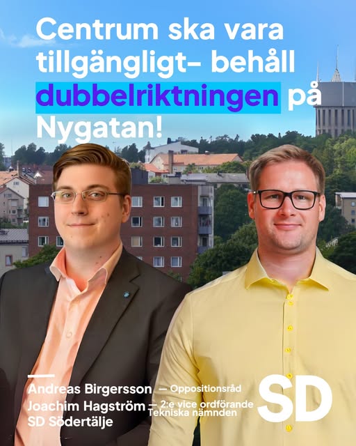 Vi sverigedemokrater, tillsammans med näringsidkare i Södertälje centrum, ser det som avgörande att det förblir enkelt att ta sig till centrum med bil. För småbarnsfamiljer, landsbygdsbor och besökare är detta en ödesfråga. När vi redan ser att affärer stänger i centrum, är det vår övertygelse att en enkelriktning av Nygatan visserligen skulle frigöra utrymme – men på bekostnad av att färre besöker vår älskade stadskärna.