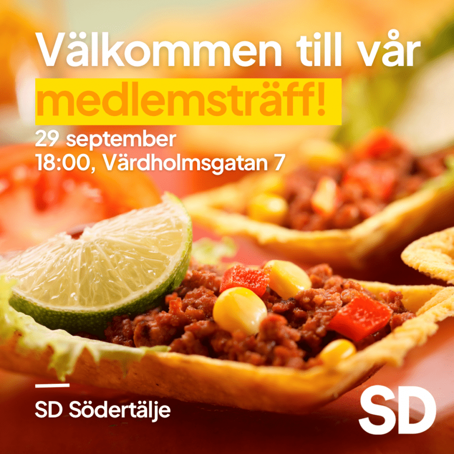 Ta gärna med en kompis eller någon som kanske är intresserad av att lära känna Sverigedemokraterna lite bättre. Hoppas vi ses där 🙂